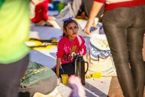 Crianças que ainda não haviam participado da tradição, puderam ajudar na montagem do tapete