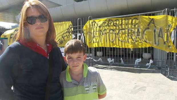 Sou de Prudentópolis, estava aqui na quarta-feira. Quis voltar e trazer meu marido, que acompanhou tudo de casa, pela TV, e meus filhos, principalmente eles. Meu filho mais velho é meu aluno na rede estadual; queria trazê-lo para ele sentir esse clima aqui. Esse campo de batalha que a gente enfrentou na quarta-feira.