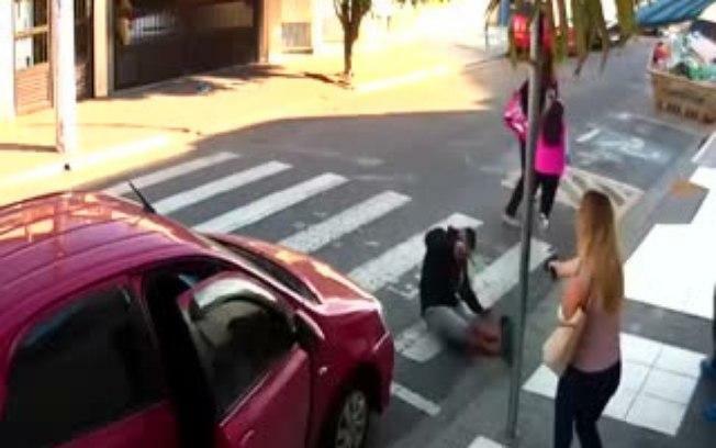 Um vídeo que circula nas redes sociais mostra a ação do assaltante e da PM. Nele, é possível ver o suspeito se aproximando das vítimas, o momento em que a PM dispara contra ele e apreende sua arma.