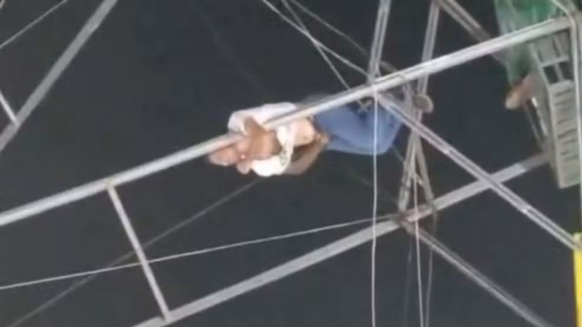 Um assento de uma roda-gigante no interior do Acre quebrou e fez com que um homem ficasse pendurado à estrutura do brinquedo. O caso ocorreu no último sábado (4), durante a feira ExpoQuinari, em Senador Guiomard.
