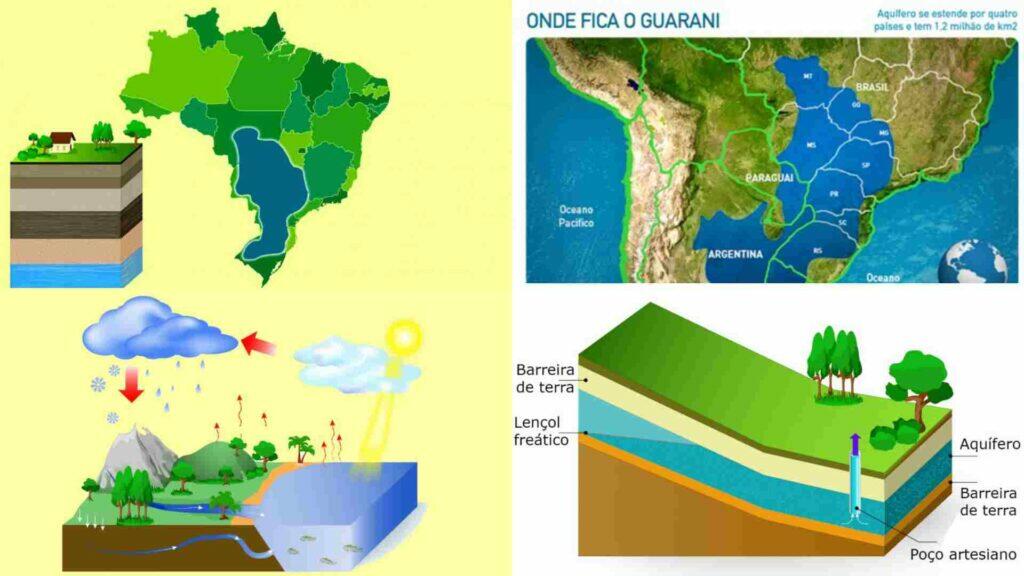 Parte crucial desse sistema é o Aquífero Guarani, um dos maiores reservatórios subterrâneos do mundo. Ele se estende por 1,2 milhão de km² e abrange o Brasil, a Argentina, o Paraguai e o Uruguai — cerca de 70% dessa área está no subsolo brasileiro. Em Mato Grosso do Sul, o Aquífero Guarani ocupa 214 mil km², sendo 35,8 mil km² de áreas aflorantes (com acesso mais direto) e 178,2 mil km² confinados sob formações geológicas profundas.