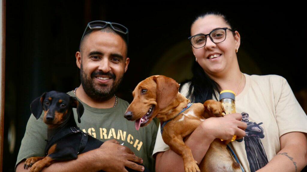 Evelin Viscardi e Geiderson Francisco levaram os cãezinhos Catarina e Alfredo para serem abençoados nesta tarde. Para os tutores, Cataria recebeu um milagre após uma promessa.