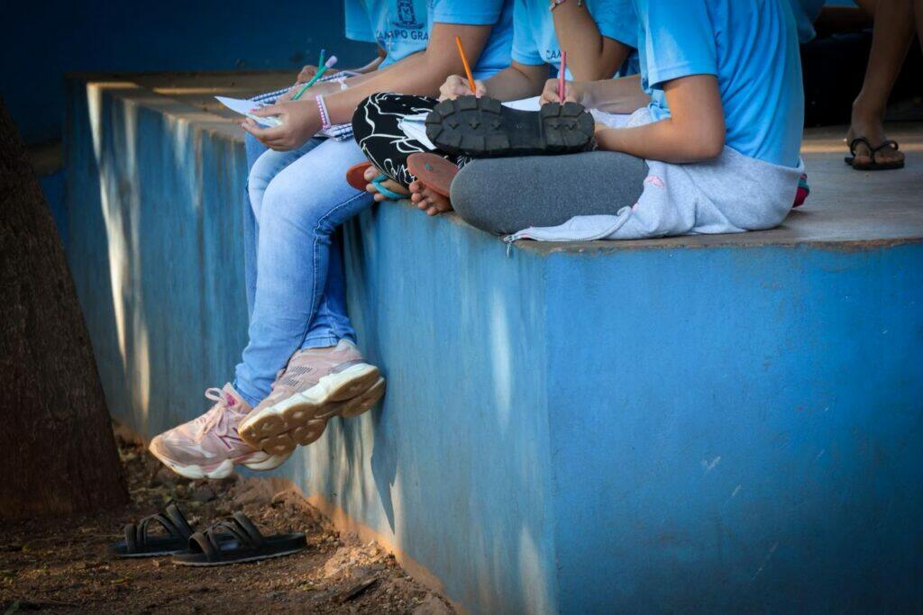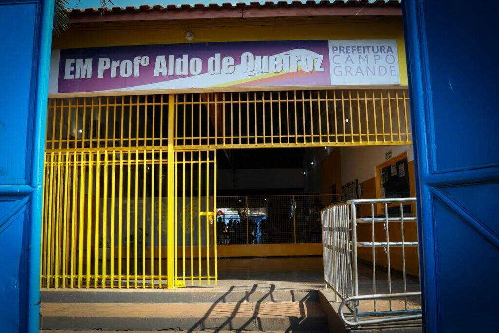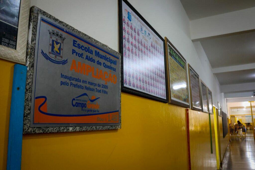 Vibrante como os alunos que enchem os corredores de vida, a fachada amarela dá as boas-vindas na Escola Municipal Prof. Aldo de Queiroz. Os cartazes produzidos por estudantes e espalhados pelas paredes mostram com orgulho como a arte e o saber conduzem uma geração criativa, curiosa e sedenta por aprendizagem no bairro Cidade Morena, em Campo Grande.