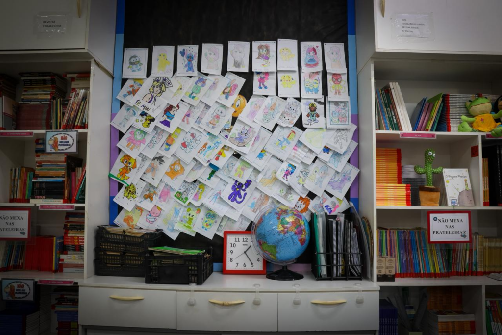 “Pra gente, o que importa é acolher o aluno para que ele se sinta confortável no espaço. A gente começou aos poucos, organizando os livros, para ficar mais acessível para eles. Depois, pensamos nesse projeto para trazer o aluno pra cá. Eu sou formada em arte, então a gente pensou em mexer com desenho de alguma forma”, explica Priscila.