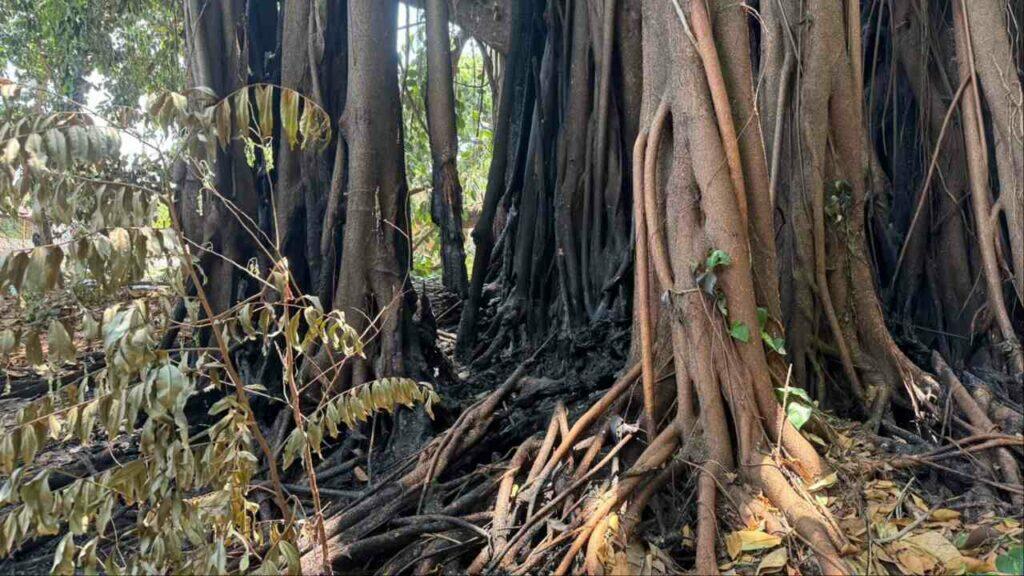 Parte de uma figueira centenária caiu sobre um muro e fiação elétrica da Rua Sertãozinho, na Vila Ipiranga, em Campo Grande, na manhã desta quinta-feira (9). Velas acesas para rituais teriam causado a queima das raízes da árvore. Moradores e comerciantes do bairro estão sem abastecimento elétrico.