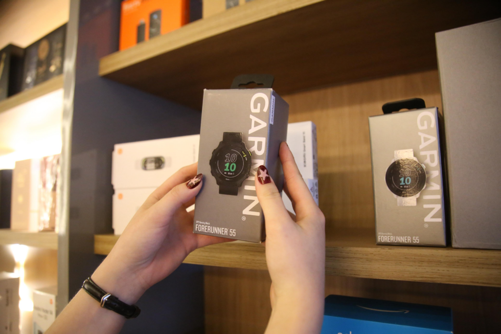 Segundo Maximiliano Ida, proprietário, há modelo para todos os bolsos e preferências de funcionalidade. Esse último é importante o usuário saber, para que a compra seja assertiva. Para quem pratica atividades de alto rendimento, por exemplo, tem o modelo Garmin Forerunner 55 (R$ 1.350). Ele monitora: a condição física, o estresse, o ciclo menstrual, tem central de música, recebe notificações de mensagem, entre outros.