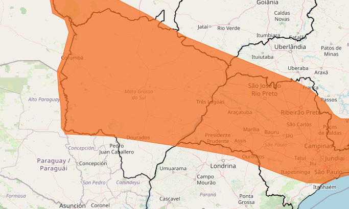 O Inmet (Instituto Nacional de Meteorologia) renovou o aviso de tempestade para 66 cidades de Mato Grosso do Sul. Entre esta segunda (13) e terça-feira (14), a atuação de uma frente fria, associada a um ciclone extratropical e outros sistemas meteorológicos, pode causar chuva de até 100 milímetros, acompanhada de rajadas de vento de até 100 km/h e queda de granizo.