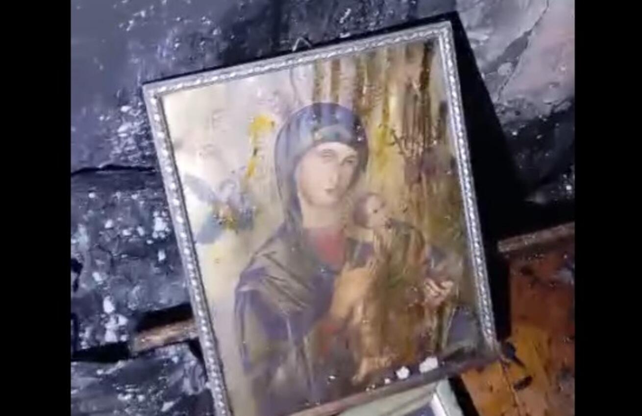 Quadro de Nossa Senhora do Perpétuo Socorro, padroeira de Mato Grosso do Sul, ficou praticamente intacto em um incêndio que destruiu uma residência no Bairro Universitário em Campo Grande, na noite desta sexta-feira (10).