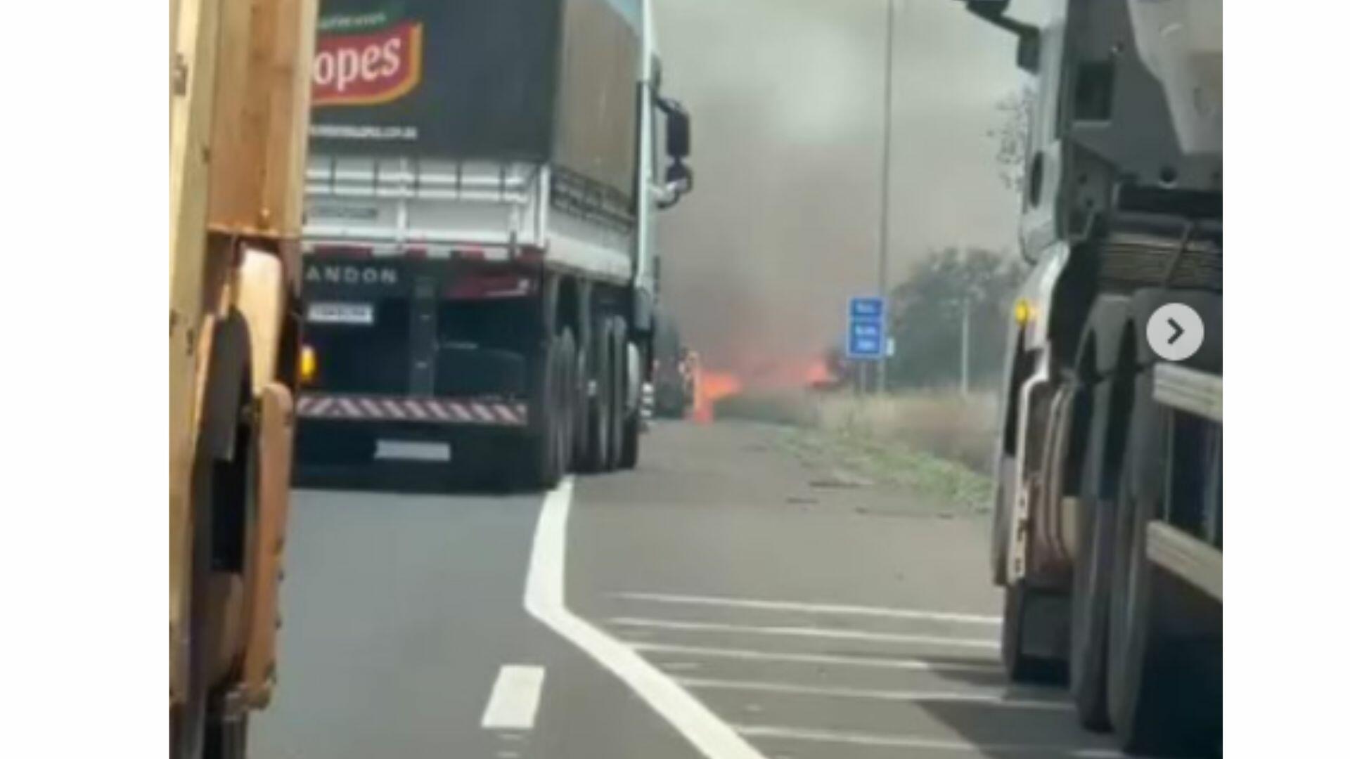 As imagens do Repórter Bronka, divulgadas nas redes sociais, mostram a nuvem de fumaça densa e muita escura pôde ser vista de longe. Uma longa fila de veículos se formou na rodovia, principalmente de carretas. “Estamos na fila quilométrica que se formou na BR 163. Sem previsão de liberação da rodovia”, disse um dos leitores do Portal Passeando em Campo Grande.