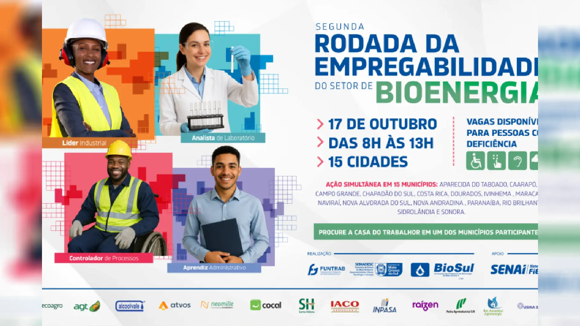 A 2° Rodada da Empregabilidade, voltada ao setor de bioenergia, ocorrerá na próxima sexta-feira (17). A data escolhida faz alusão ao Dia da Bioenergia, comemorado nacionalmente em 19 de outubro, e reforça a importância do setor para economia e desenvolvimento de Mato Grosso do Sul.