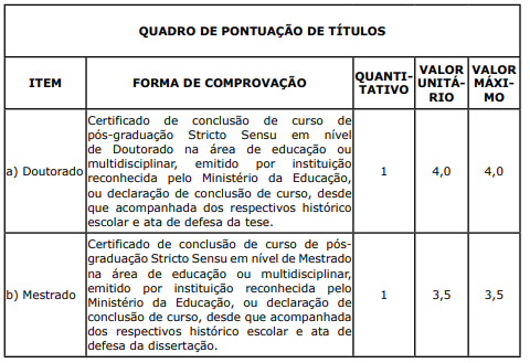 Podem participar profissionais com licenciatura plena ou curso superior compatível com o componente curricular, ou etapa de ensino pretendida. Entre os requisitos estão ter no mínimo 18 anos completos, estar em dia com obrigações eleitorais e, no caso dos homens, com o serviço militar.