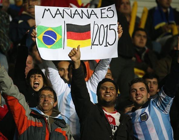 Na provocação dos hermanos, as bandeiras do Brasil e da Alemanha aparecem no lugar dos números 1 e 7, respectivamente, dizendo que amanhã será o dia 1 (Brasil) / 7 (Alemanha) / 2015.