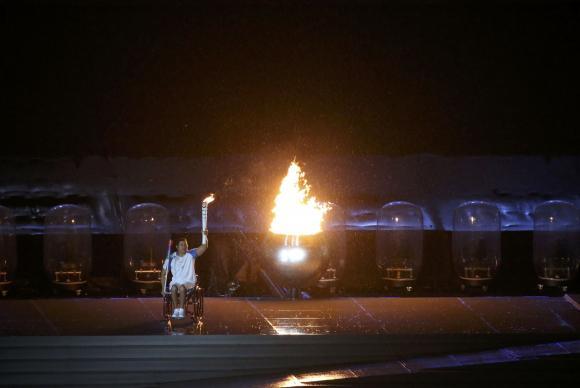 Uma das grandes perguntas da cerimônia de abertura estava na identidade de quem acenderia a pira paralímpica. Clodoaldo Silva foi o escolhido. O nadador brasileiro, que faz sua última Paralimpíada no Rio de Janeiro, coleciona 13 treze medalhas em quatro edições dos jogos. Clodoaldo recebeu a chama de Ádria Santos, velocista recém-aposentada e atualmente subprefeita da Vila Paralímpica.