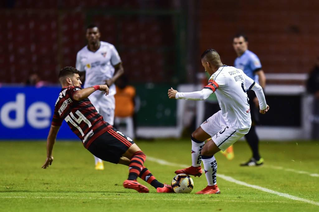 O Flamengo começou bem a partida e abriu o placar com Bruno Henrique. Só que a LDU chegou ao empate ainda na etapa inicial, com Anangonó. No segundo tempo, os equatorianos dominaram as ações e viraram com gol de Chicaiza.