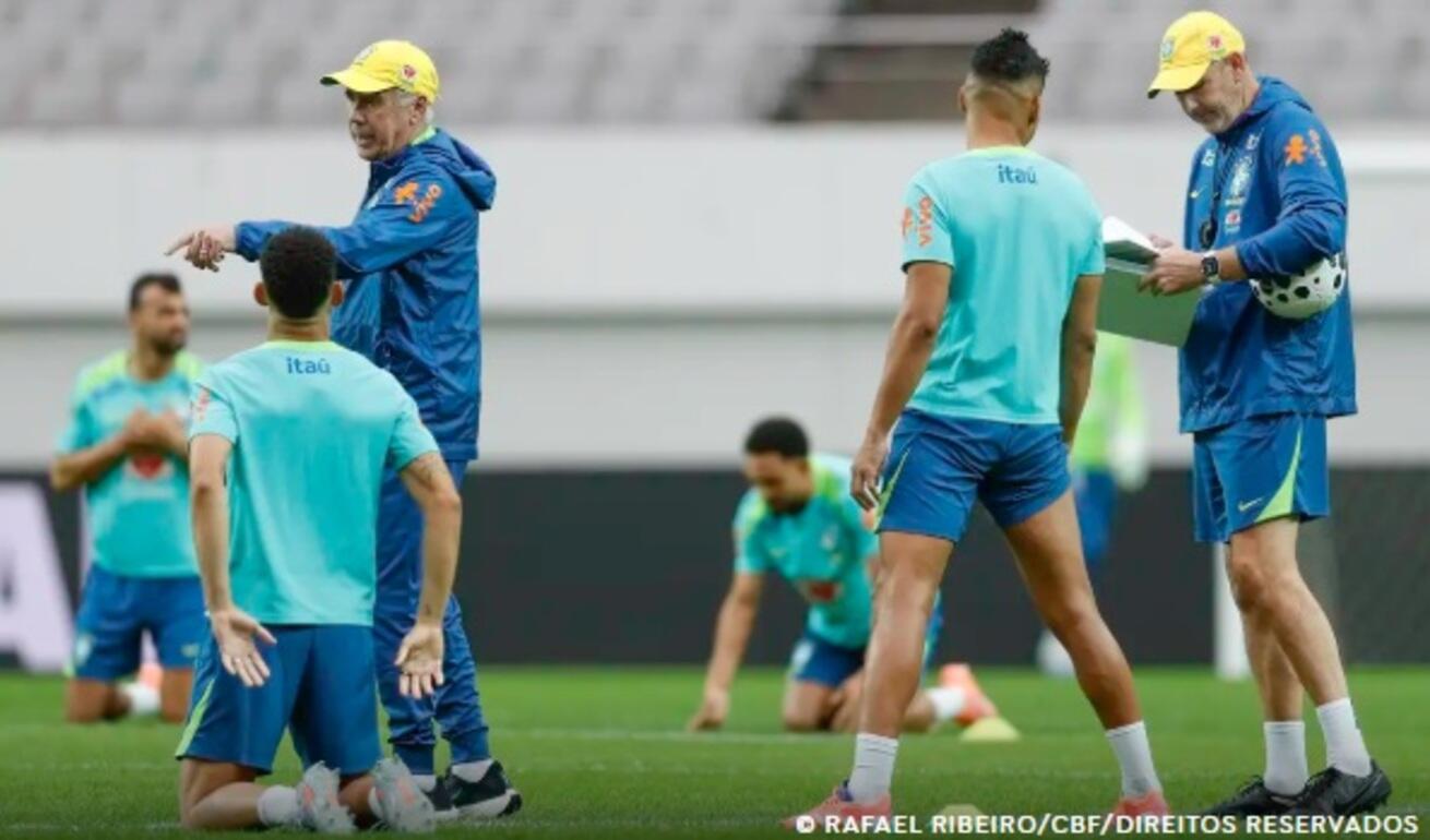 Na última atividade antes da partida, nesta quinta-feira (9), o técnico italiano Carlo Ancelotti voltou a armar a equipe no esquema 4-2-4 com um quarteto ofensivo formado por Estêvão, Matheus Cunha, Vinicius Júnior e Rodrygo. A única novidade em relação ao time formado na última quarta (8) foi a entrada de Bruno Guimarães no lugar de Lucas Paquetá.