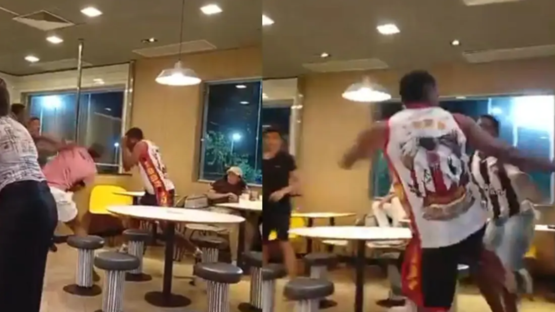 Torcedores de três times brasileiros se envolveram em confusão, trocando chutes e socos, numa lanchonete de fast food na cidade de Salvador na noite deste sábado (4).