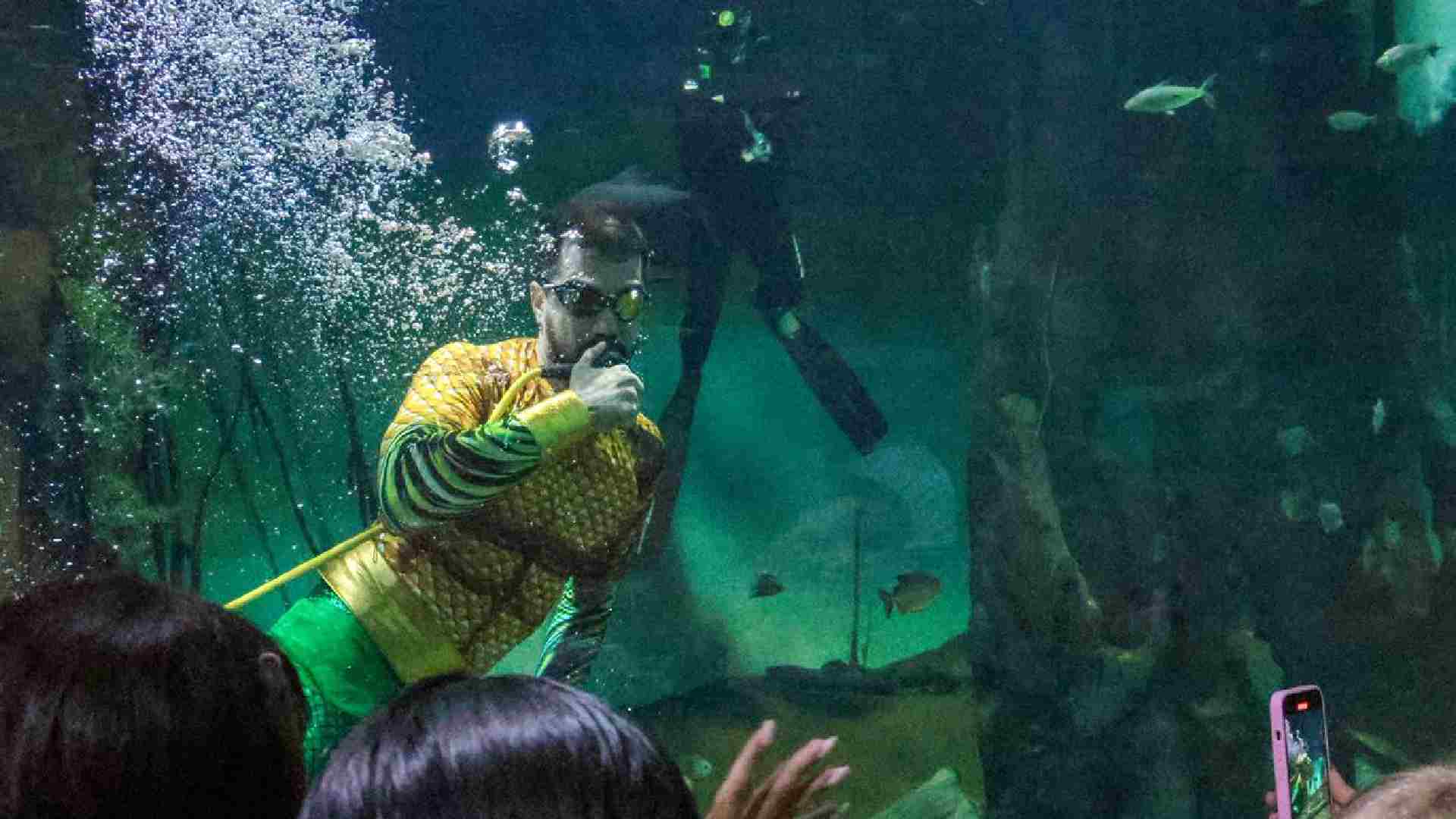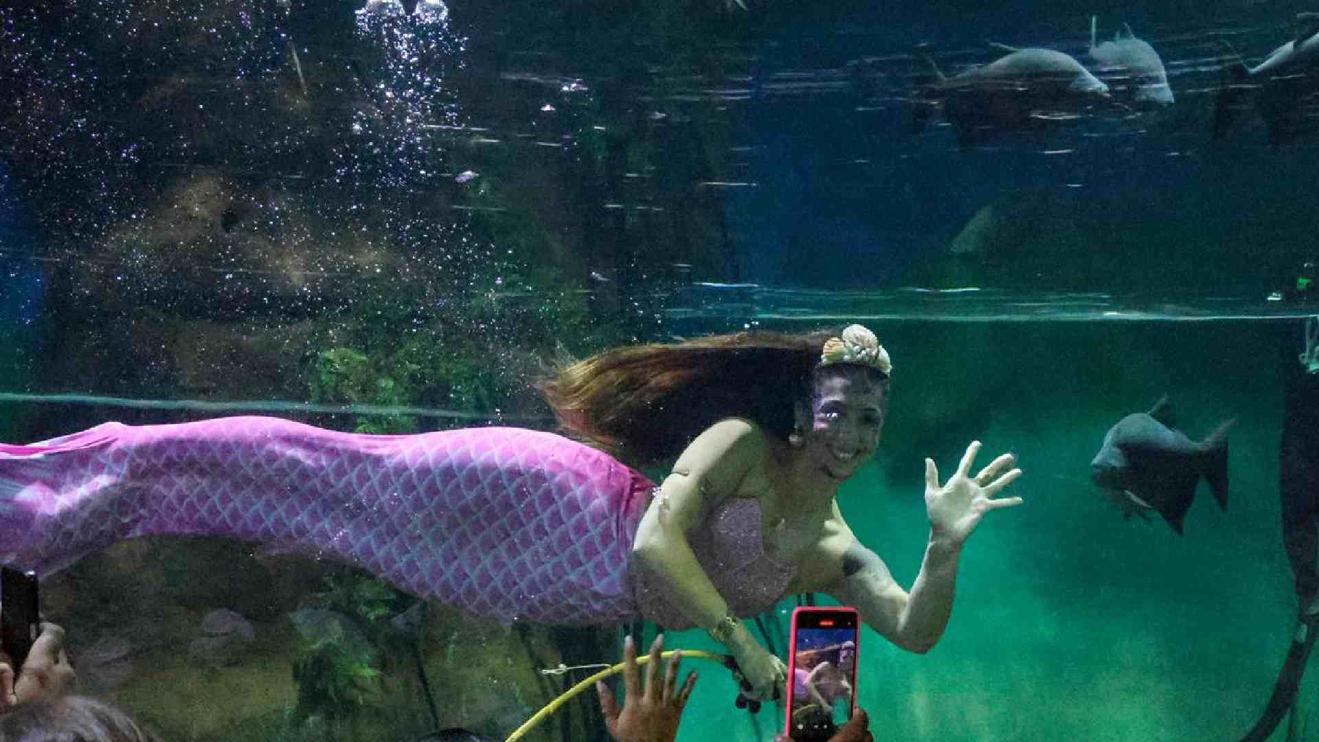 Lotou um dos compartimentos do Bioparque Pantanal na manhã deste sábado, (11) de pais e filhos para ver a sereia e o herói das águas, que encantaram a platéia. As cenas dos dois, biólogos e mergulhadores que trabalham no local, arrancaram gritos de euforia das crianças.