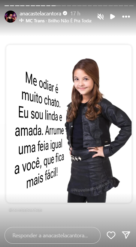 A cantora Ana Castela deu o que falar ao compartilhar uma publicação polêmica nas redes sociais. Em suma, a sertaneja mandou um recado àqueles que a atacam gratuitamente.