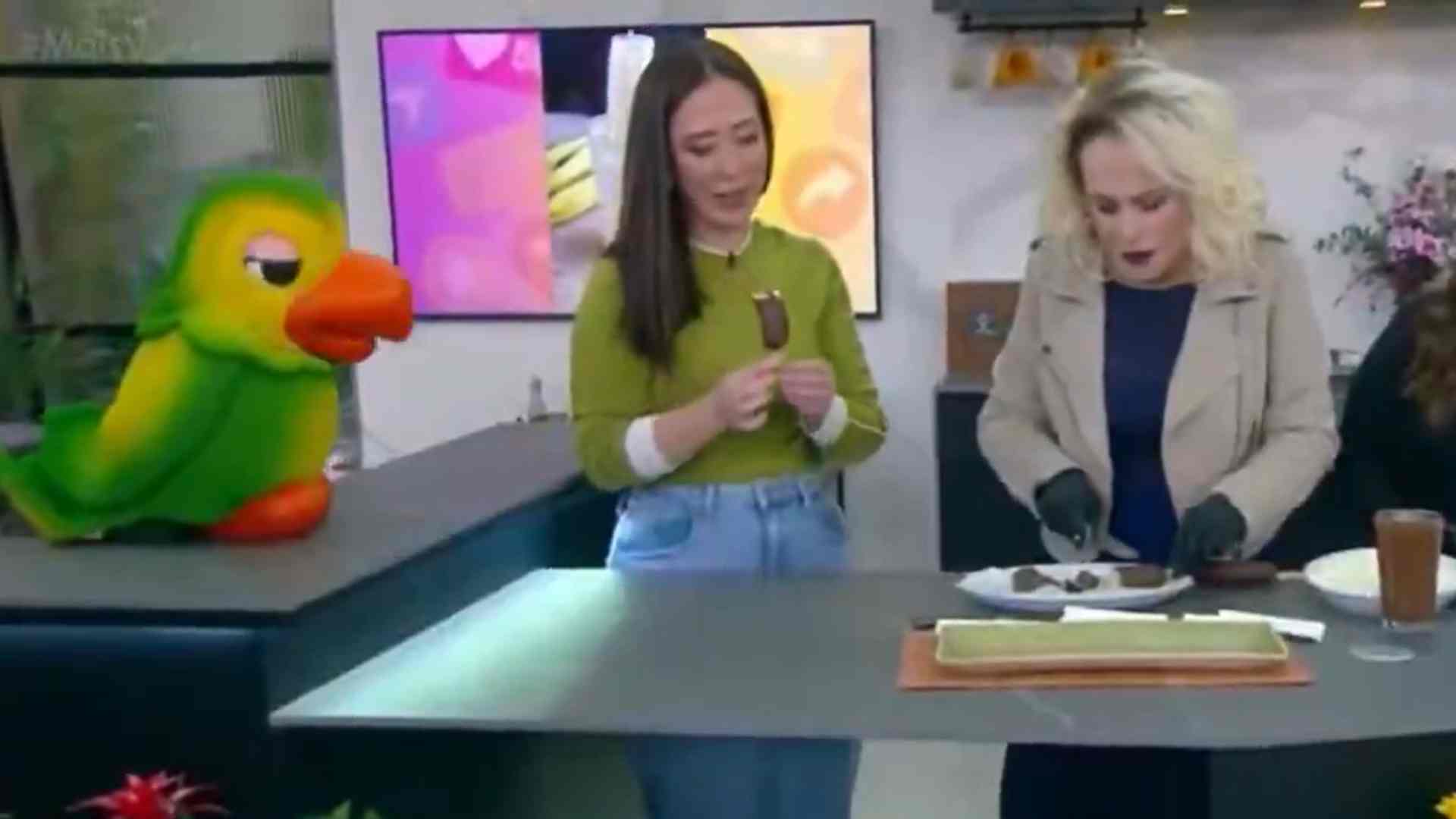 Então, quando a veterana foi provar o doce, ela cortou em rodelas e ofereceu ao papagaio – que se recusou a comer. Ana Maria Braga atribuiu a rejeição ao formato fálico da sobremesa e deu uma bronca: “Larga mão de ser machista, rapaz! Que coisa é essa?”.