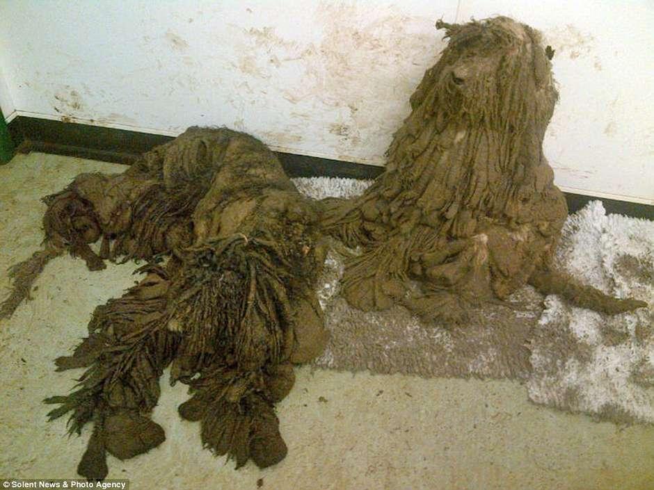 Segundo os veterinários que resgataram os cães da raça poodle (que são a mãe e oito filhotes), foram necessárias três horas para fazer a tosa de cada um, de tanto pelo que havia em seus corpos. Alguns também precisaram ser sedados, pois havia pedras encrustadas em suas patas, que precisaram ser retiradas em um procedimento cirúrgico. “Ela [a mãe] tinha pedras presas em suas patas, que, obviamente, estavam lá há algum tempo. É nojento. Eu nunca vi um cão nessa condição antes”, disse a veterinária Martha Edwards.