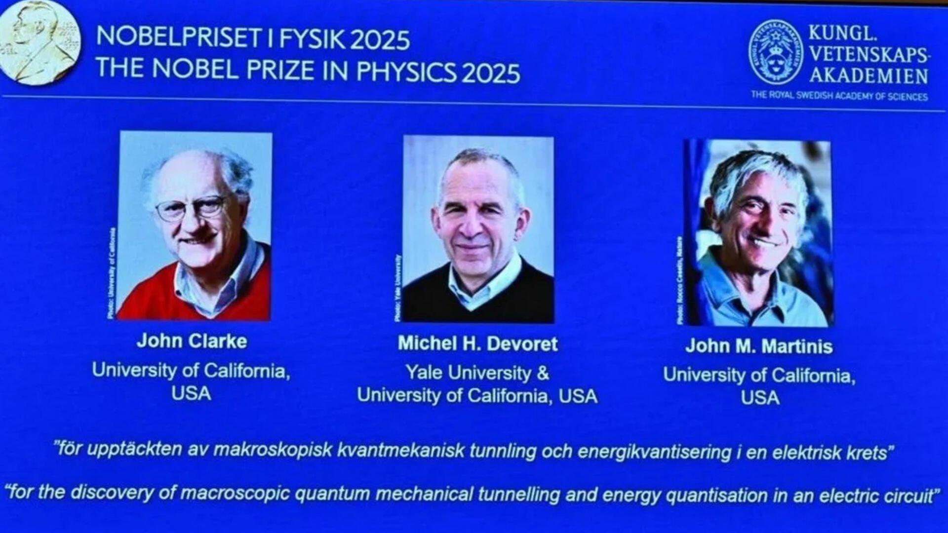 O Prêmio Nobel de Física de 2025 foi concedido para três pesquisadores que atuam nos Estados Unidos – John Clarke, Michel Devoret e John Martinis -, anunciou a Academia Sueca na manhã desta terça-feira, 7. Os trabalhos desse trio pavimentaram caminhos para revolucionar a tecnologia quântica, incluindo computadores e sensores quânticos.