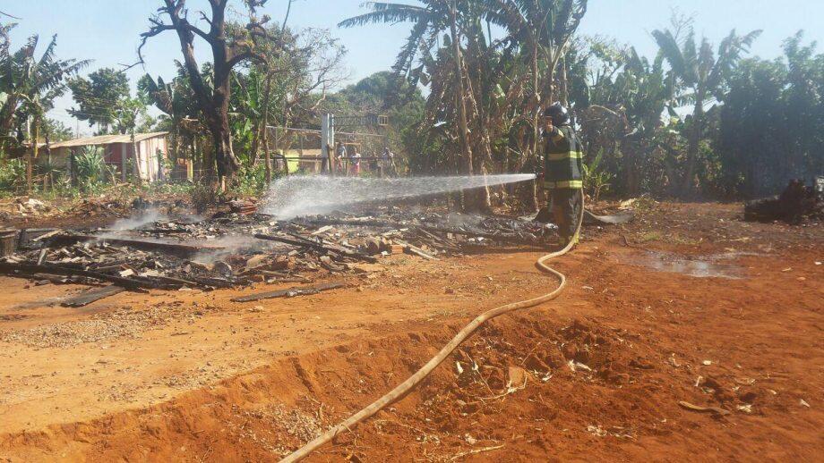 Um incêndio na manhã desta quarta-feira (3) destruiu uma casa de madeira, na Rua Cabrália Paulista, no Jardim Centenário, em Campo Grande. O fogo teria começado no telhado da residência.