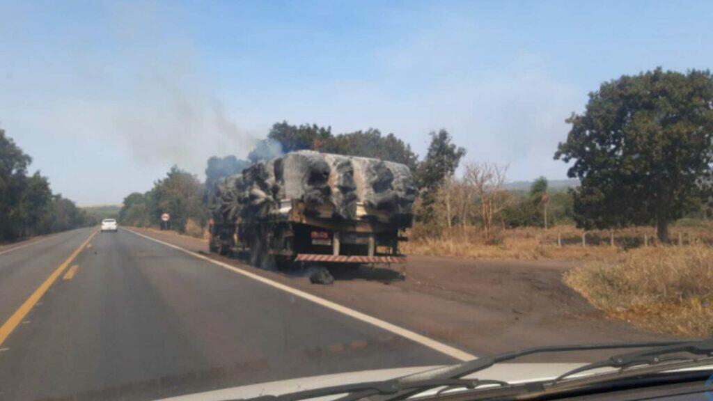 Incêndio atinge caminhão carregado com algodão e impacta trânsito na BR-163 em Coxim
