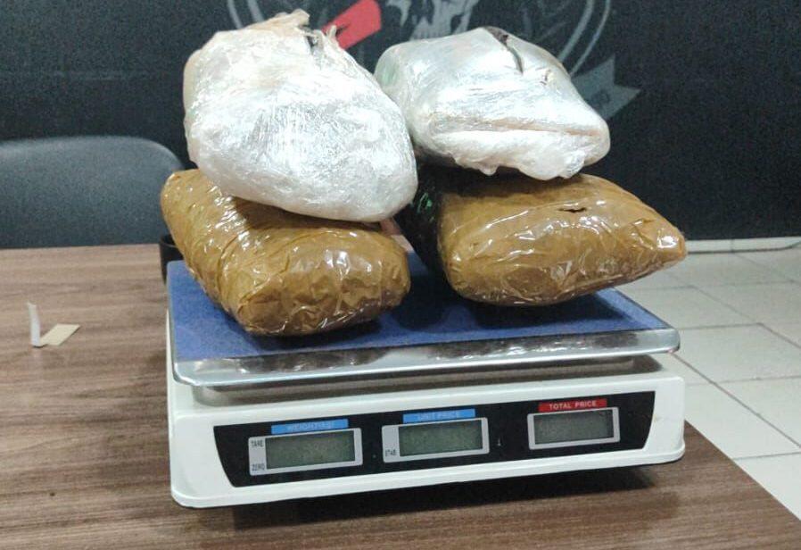 Os policiais localizaram cinco pacotes de maconha, três balanças de precisão, anotações da movimentação do tráfico de drogas, um celular e duas placas veiculares na residência. A soma totalizou 3 kg de entorpecente.