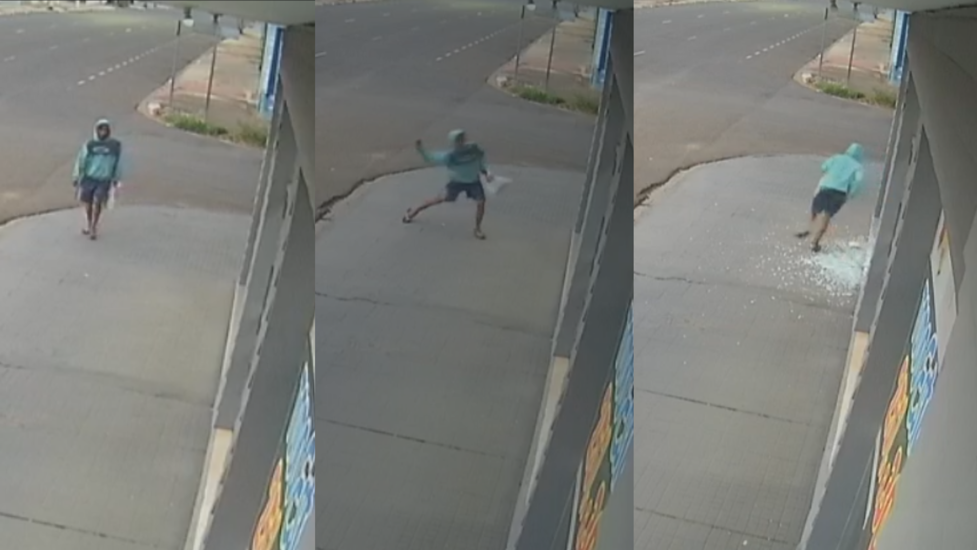 O crime ocorreu por volta das 5 da madrugada, na loja de móveis que fica na Rua 14 de Julho, no Bairro Monte Líbano, em Campo Grande. As imagens também mostram o suspeito transitando mais de uma vez na calçada, antes de cometer o crime.