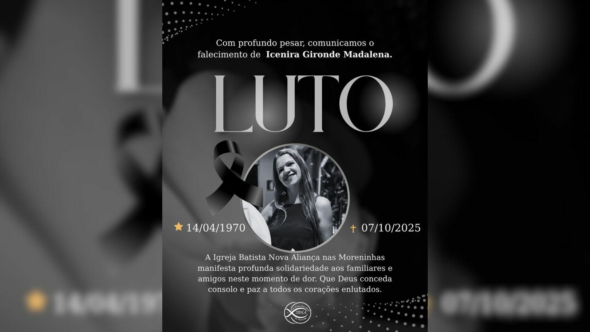 Também, a comunidade de uma igreja localizada nas Moreninhas publicou um comunicado sobre a partida de Icenira. “A Igreja Batista Nova Aliança nas Moreninhas manifesta profunda solidariedade aos familiares e amigos neste momento de dor. Que Deus conceda consolo e paz a todos os corações enlutados”, diz o comunicado.