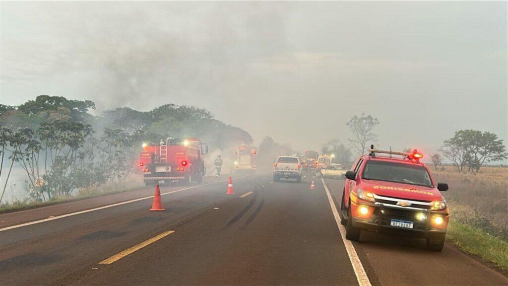 Informações repassadas ao Jornal Midiamax são de que o acidente teria ocorrido por volta das 5 horas, quando um carro teria batido contra a traseira do Ford Belina, que pegou fogo às margens da rodovia.