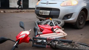 Carro e bicicleta elétrica colidem durante conversão na Avenida Manoel da Costa Lima