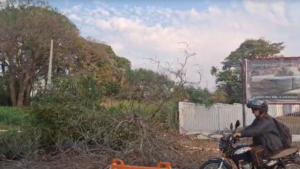 Trânsito lento: árvore caída bloqueia faixa de rotatória na Avenida Ernesto Geisel