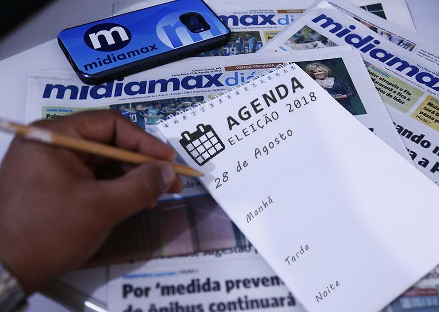 O Jornal Midiamax passou a divulgar a agenda de compromissos públicos dos seis candidatos ao governo de Mato Grosso do Sul, em ordem alfabética, e o fará até a data permitida, pela Justiça Eleitoral, para realização de propaganda partidária.