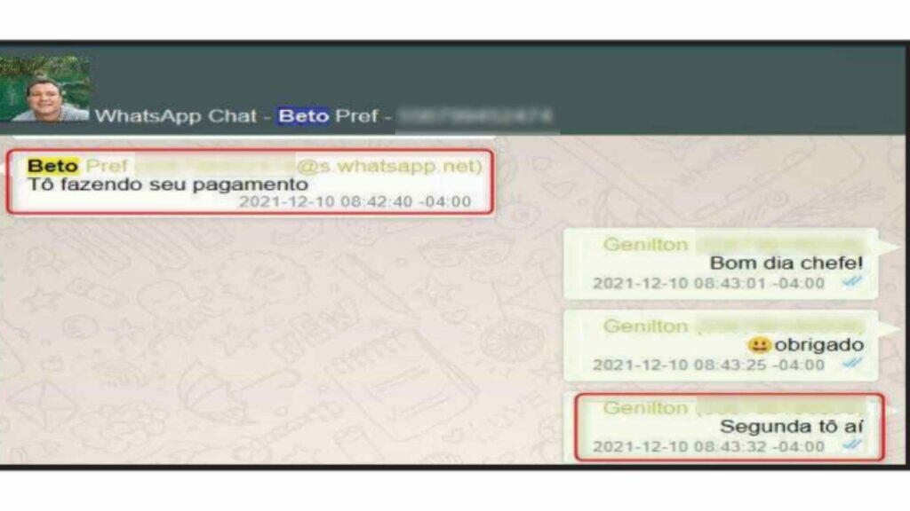No dia seguinte, Genilton faz o Pix de R$ 20 mil para o nome indicado de Beto. A informação coletada via WhatsApp foi confirmada pelo Gecoc após quebra de sigilo bancário de Genilton.