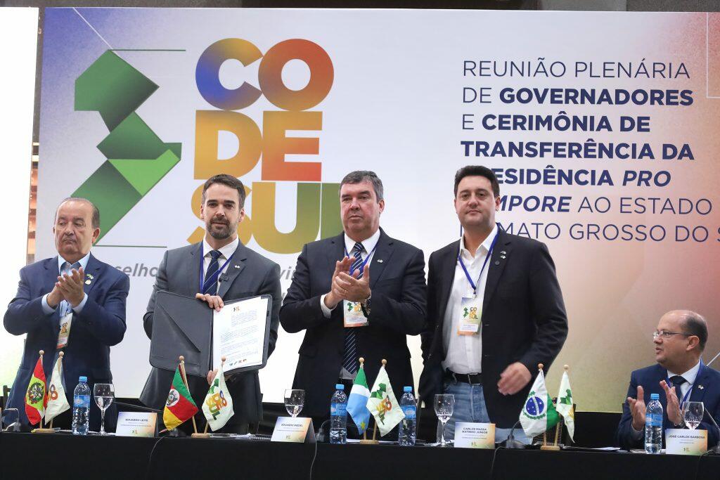 O governador Eduardo Riedel (PP), presidente do Codesul (Conselho de Desenvolvimento e Integração Sul), criou o GT Fazenda, um grupo de trabalho para analisar a tramitação dos projetos de lei em curso no Congresso Nacional, notadamente do Projeto de Lei Complementar – PLP nº 435/2008 e apensos, verificando os riscos e as oportunidades para os Estados integrantes do Conselho.