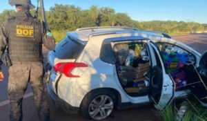 Homem é preso com maconha e skunk escondido em compartimento falso de carro em MS